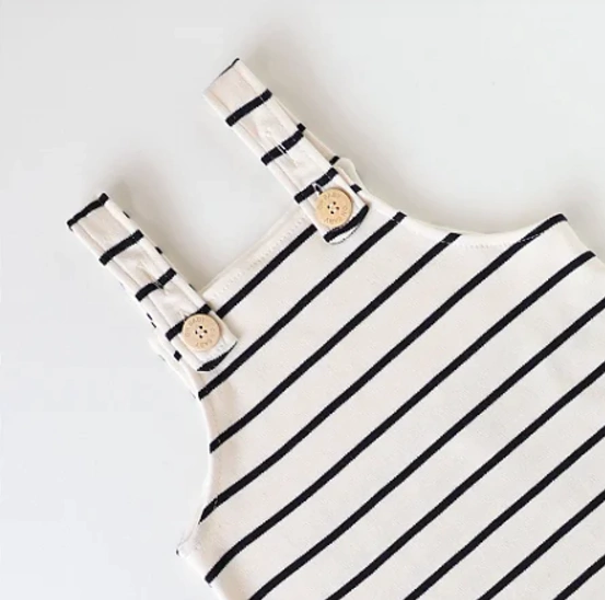 Feita em algodão penteado, a jardineira tem listras e é super basiquinha, podendo ser utilizada tanto por meninos quanto por meninas, uma fofura completa!